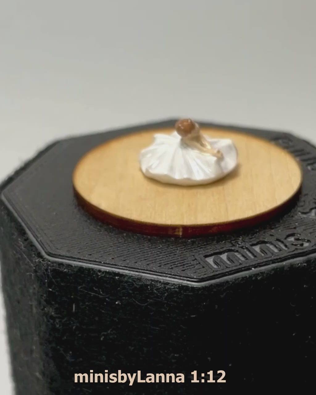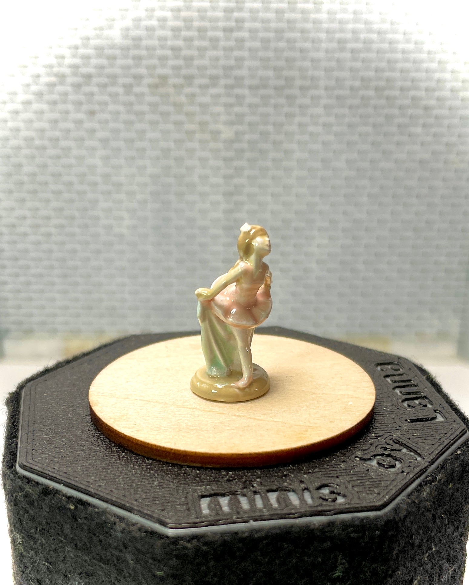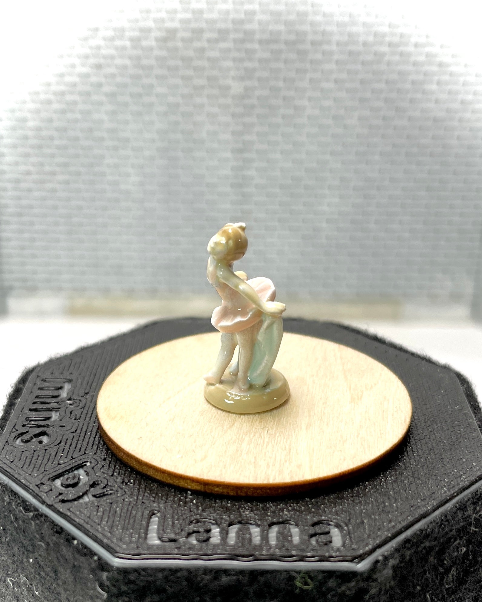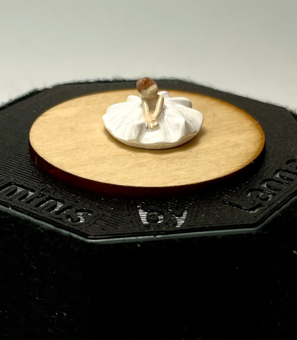 - Sitting Ballerina is: 15 mm (5/8“) round base x 10 mm (3/8”) high;