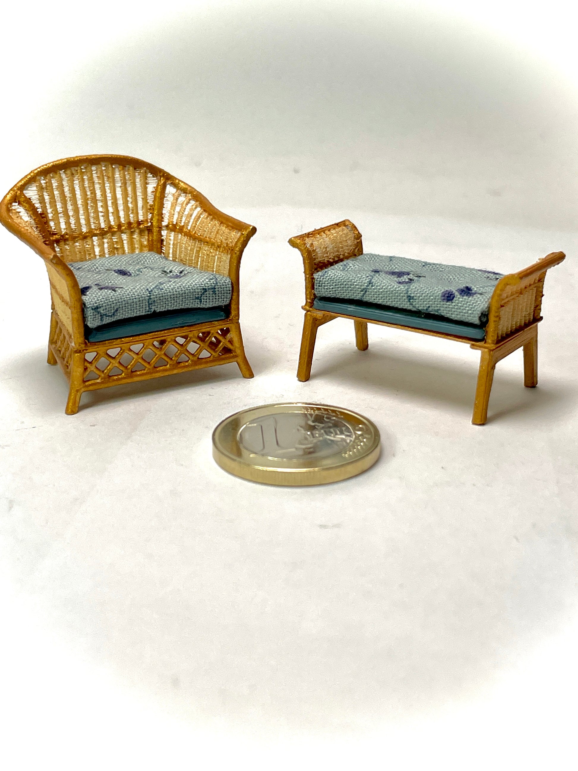 1:24 Dollhouse cane rattan blue 23 furniture - Half Scale