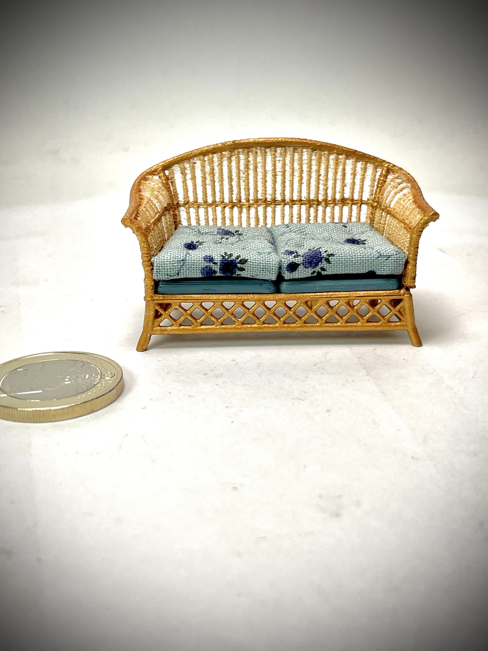 1:24 Dollhouse cane rattan blue 23 furniture - Half Scale