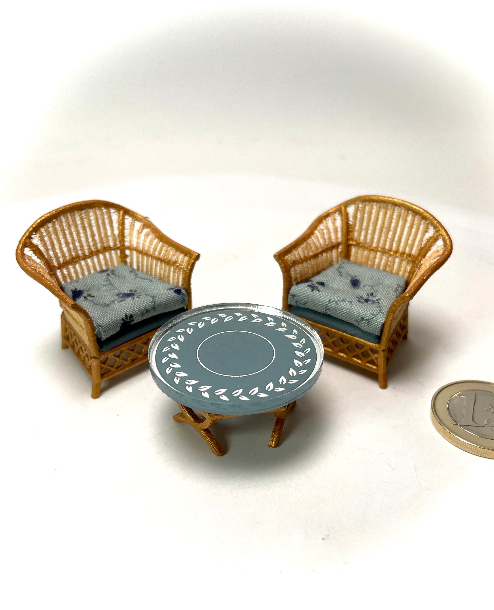 1:24 Dollhouse cane rattan blue 23 furniture - Half Scale